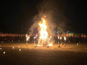 Memasuki malam hari, suasana perkemahan semakin meriah dengan kegiatan api unggun. Nyala api yang berkobar melambangkan semangat persaudaraan dan kebersamaan antar peserta. Setelah api unggun, para murid menampilkan berbagai pentas seni yang menarik dan kreatif. Gelak tawa dan tepuk tangan penonton menambah semarak malam kebersamaan tersebut.
