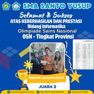 Tanjung Balai Karimun, YTKNews.id – Kabar membanggakan datang dari SMA Santo Yusup. Salah satu siswanya, Gabriel Leonardo Barti, berhasil meraih Juara 2 Olimpiade Sains Nasional (OSN) bidang Informatika Tingkat Provinsi Kepulauan Riau.