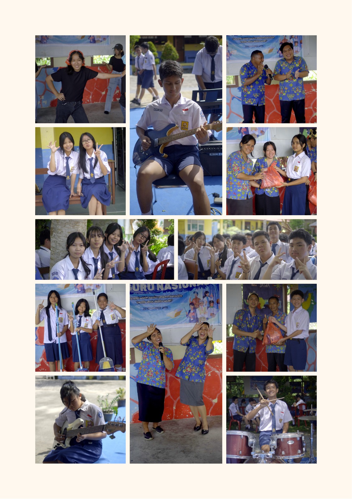 Acara kemudian dilanjutkan dengan penampilan dari para siswa, seperti drama, musik, dan tarian. Setiap penampilan disiapkan khusus sebagai bentuk penghargaan kepada para guru yang telah berjasa membimbing mereka.