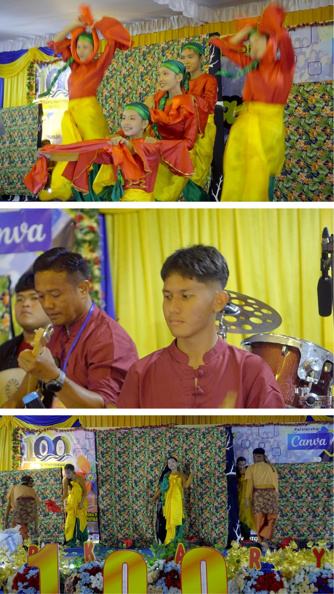 Alunan musik yang dimainkan langsung oleh para siswa menambah kekuatan emosi dalam setiap adegan. Aksi teatrikal yang hidup, tarian yang anggun, serta lantunan lagu bernuansa tradisi dan modern menjadikan pertunjukan ini sebagai suguhan seni yang luar biasa.