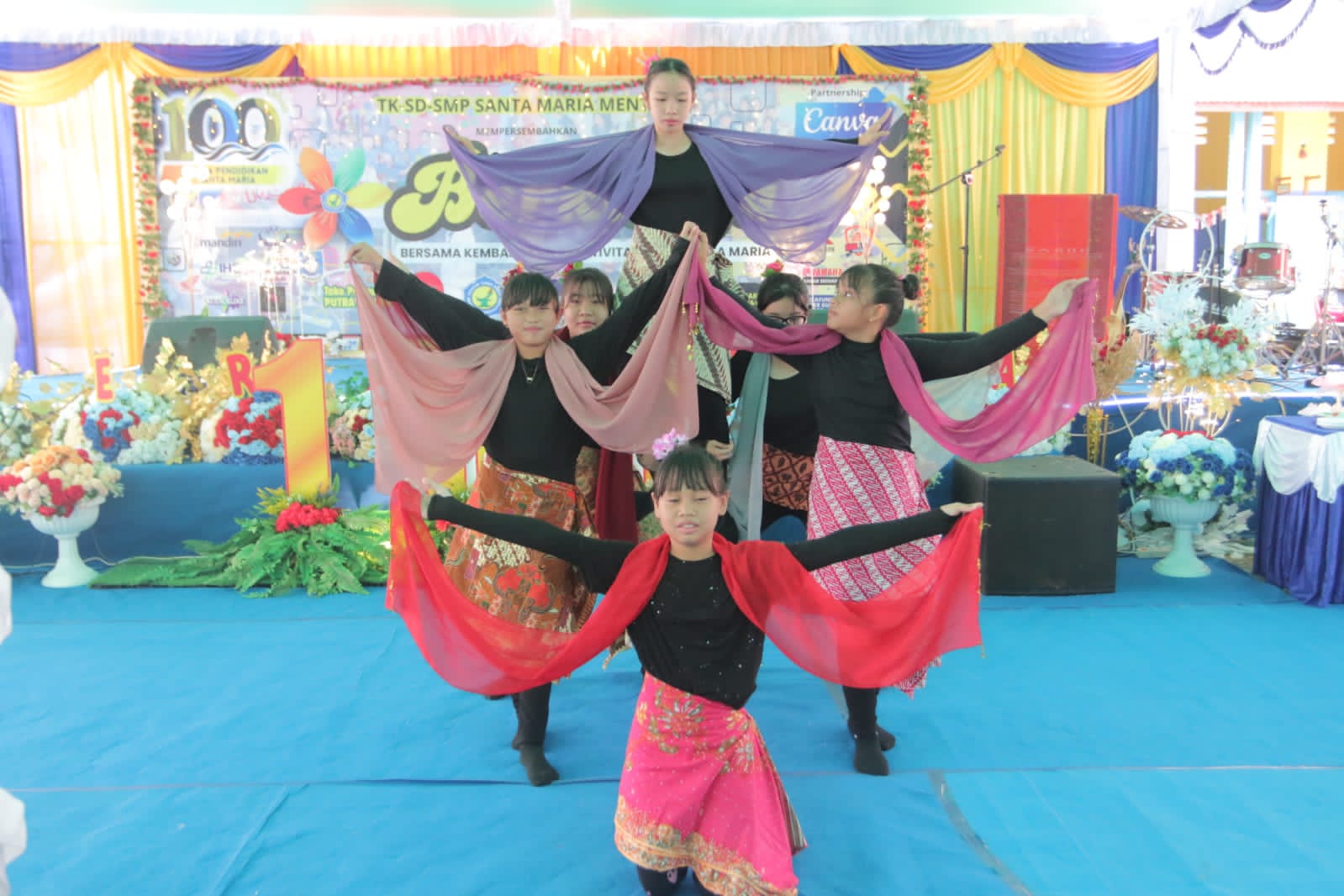 Perayaan seabad ini juga dimeriahkan dengan pentas bakat siswa, menampilkan ragam budaya yang menggambarkan semangat kebersamaan lintas suku dan tradisi. Dari tarian Melayu hingga Tionghoa, semuanya berpadu indah, memperlihatkan keharmonisan yang sejak lama menjadi ciri khas komunitas Santa Maria.