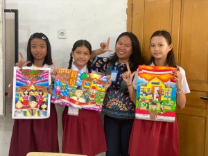 Melalui hasil karyanya, siswi SD Santo Paulus 1 menggambarkan betapa pentingnya perjuangan para guru dan siswa dalam menuntut ilmu demi masa depan bangsa. Sentuhan warna yang kuat dan pesan moral yang dalam membuat posternya mencuri perhatian dewan juri.