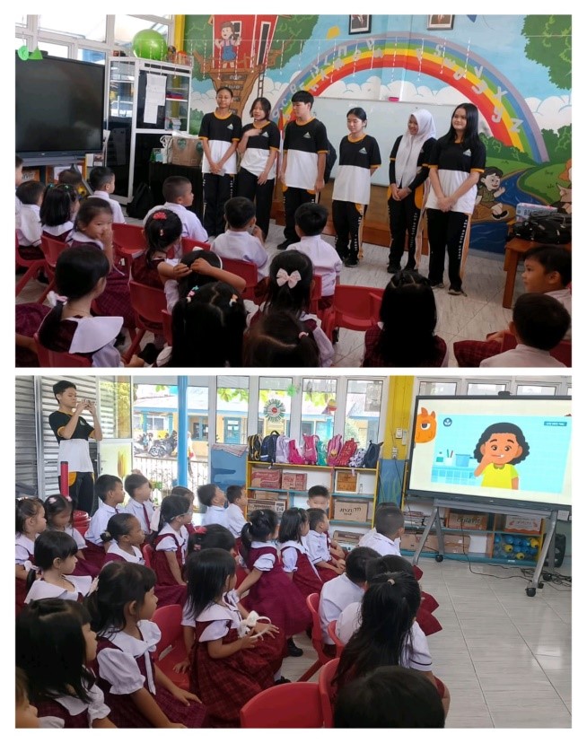 “Waahhh ada cece sama koko datang ke sekolah kita?” seru salah satu siswa TK dengan gembira.