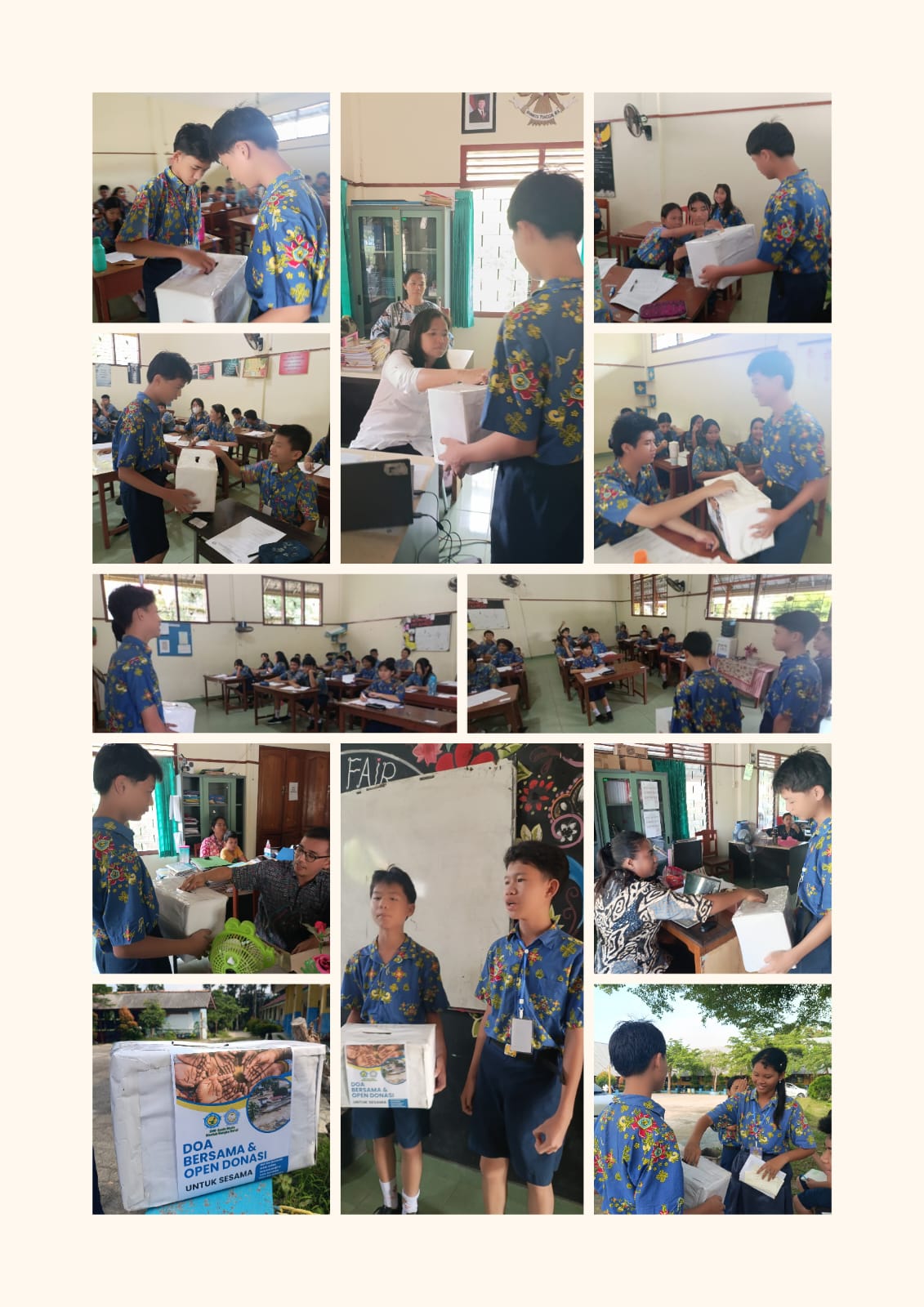 Pengurus OSIS SMP Santa Maria bergerak dari kelas ke kelas untuk melakukan penggalangan dana. Antusiasme siswa terlihat jelas dari sambutan hangat dan keikhlasan mereka dalam memberikan donasi. Banyak siswa yang datang di sela waktu ujian dengan wajah penuh empati dan semangat untuk turut membantu.