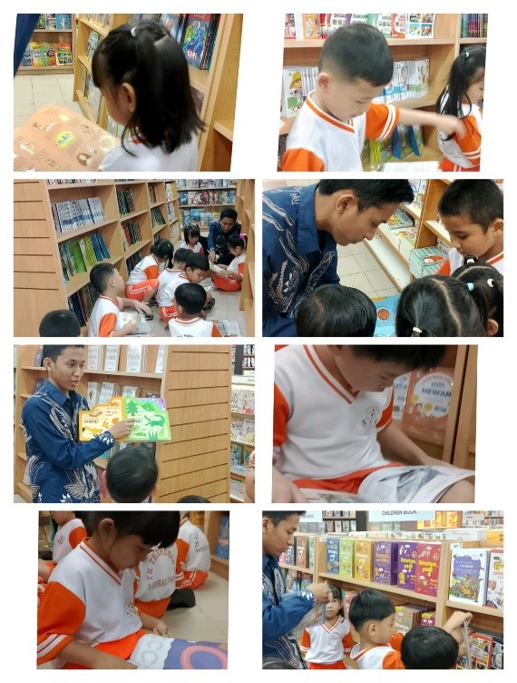 Ternyata kakak-kakak mengajak siswa jalan – jalan, bukan hanya melihat rak-rak yang terisi penuh dengan buku saja namun seperti boneka, buku cerita, mainan, alat tulis, dan banyak lagi. Siswa pun sambil melihat-lihat buku cerita yang mereka ambil, mereka juga saling bercerita apa yang mereka lihat di dalam buku. Dengan hati gembira salah satu siswa mengungkapkan
