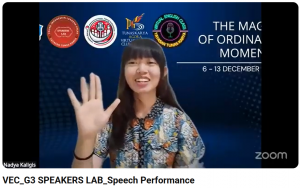 Dengan tema “The Magic of Ordinary Moments,” para peserta menampilkan pidato yang mengajak audiens menemukan keindahan dari hal-hal sederhana dalam kehidupan sehari-hari. Kreativitas, percaya diri, dan kemampuan public speaking tampak jelas dari setiap performa yang ditampilkan secara daring melalui Zoom dan disiarkan ke YouTube agar dapat diakses lebih luas.