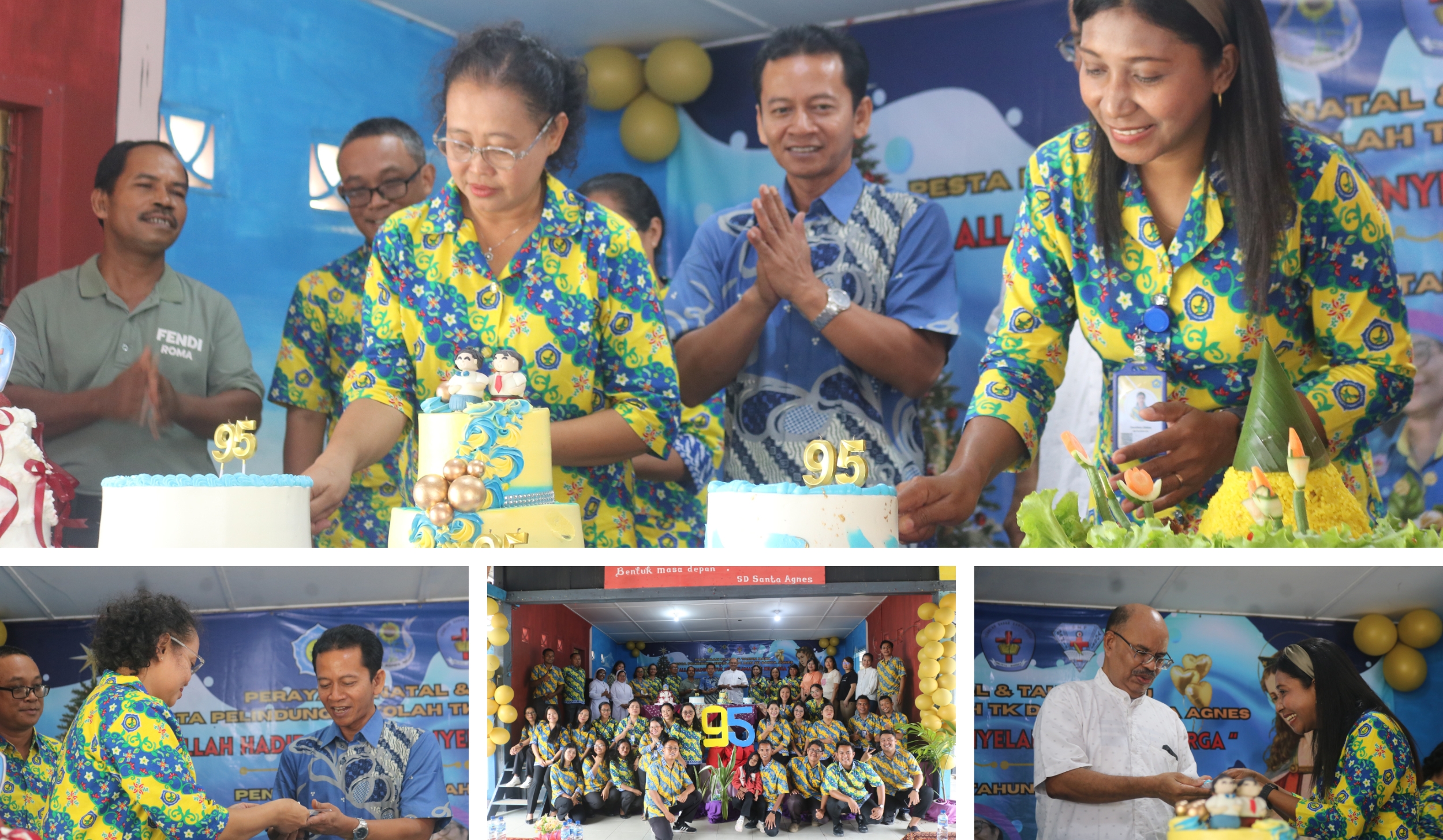 Perayaan semakin semarak dengan prosesi potong kue ulang tahun ke-95 TK dan SD Santa Agnes Belinyu. Dengan iringan lagu ulang tahun dan tepuk tangan meriah dari seluruh hadirin, kue ulang tahun dipotong sebagai simbol syukur atas perjalanan panjang penuh karya dan pengabdian. Momen ini menjadi ungapan rasa terima kasih atas penyertaan Tuhan selama 95 tahun perjalanan pendidikan Santa Agnes, sekaligus simbol harapan agar semangat pelayanan, persatuan, dan cinta kasih terus tumbuh dan diwariskan kepada generasi-generasi berikutnya.
