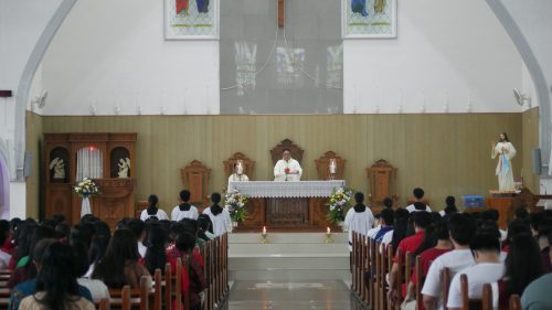 “Jadikanlah Yesus sebagai bintang di hati kalian. Dengan begitu, Ia akan menjadi cahaya, petunjuk, dan harta paling berharga yang senantiasa menerangi setiap langkah kehidupan kalian di tahun yang baru ini,” pesan Diakon Lorensius di hadapan ratusan siswa.
