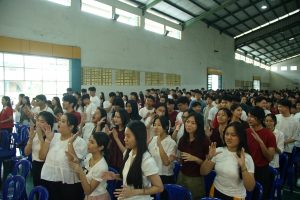 Ratusan siswa yang hadir tampak antusias mengikuti jalannya acara dari awal hingga akhir. Dengan mengenakan pakaian bernuansa merah dan putih, mereka memenuhi ruangan dan memberikan tepuk tangan meriah bagi rekan-rekan mereka yang tampil di atas panggung