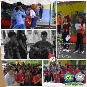 Mentok,YTKNews.id– Hujan turun tanpa jeda sejak pagi hingga penghujung acara, namun semangat kebersamaan di SMP Santa Maria Mentok justru semakin menyala. Kamis, 8 Januari 2026, sekolah favorit di Mentok ini menggelar perayaan Natal dan Tahun Baru bertajuk CLIGHT (Christmas Love in God Harmony Together) sebuah perayaan cahaya, harapan, dan keberagaman yang berlangsung penuh makna.