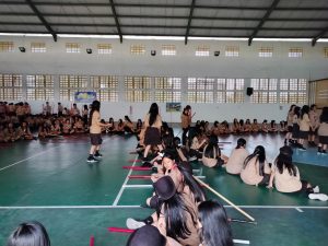 Para peserta tampak duduk melingkar di atas lantai hijau aula, mengikuti instruksi pembina dengan antusias. Berbagai permainan edukatif dilakukan, mulai dari adu ketangkasan hingga teka-teki kepramukaan yang melatih konsentrasi. Gelak tawa sesekali pecah saat ada kelompok yang melakukan kesalahan lucu, namun di balik itu semua, koordinasi dan komunikasi antaranggota tim menjadi pelajaran berharga yang mereka serap secara alami.