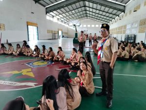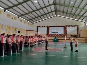 Menanamkan Kedisiplinan Sejak Dini Kegiatan di kedua tanggal tersebut dimulai tepat waktu dengan pelaksanaan Apel Pembukaan. Suasana khidmat menyelimuti aula saat para siswa yang mengenakan seragam pramuka lengkap berdiri tegap dalam barisan yang rapi. Di bawah naungan bendera Merah Putih, para pembina memberikan amanat mengenai pentingnya Tri Satya dan Dasa Darma sebagai landasan karakter setiap anggota Pramuka. Apel ini bukan sekadar rutinitas formalitas, melainkan momen untuk menyatukan visi dan memfokuskan mental para peserta didik, sebelum memasuki materi inti. Kedisiplinan yang ditunjukkan dalam kerapian barisan dan keseriusan saat penghormatan bendera menjadi cerminan kesiapan mereka untuk menjadi tunas bangsa yang tangguh.