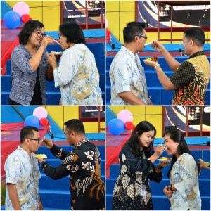Di momen itu, para guru yang terpilih secara bergantian menyampaikan ucapan selamat ulang tahun serta kata-kata motivasi kepada kepala sekolah masing-masing. Momen tersebut semakin hangat saat para guru menyuapi kepala sekolah, menciptakan suasana penuh gelak tawa sekaligus rasa haru di antara seluruh peserta.