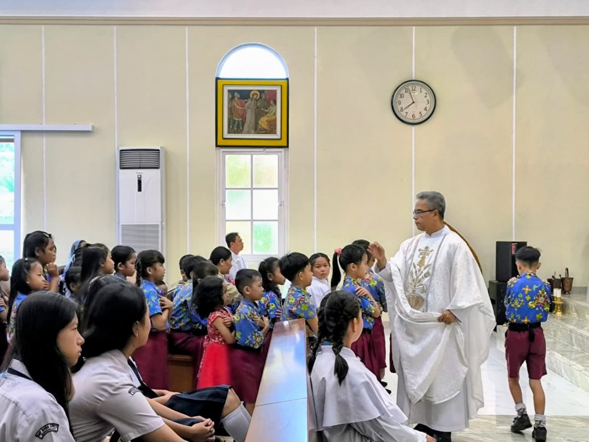 Sungailiat, YTKNews.id – Komunitas Sekolah Santa Maria Goretti mengawali tahun 2026 dengan penuh syukur melalui Perayaan Ekaristi yang dilaksanakan di Gereja Katolik St. Maria Pengantara Segala Rahmat, Sungailiat, pada Jumat (9/1). Perayaan ini diikuti oleh seluruh keluarga besar komunitas sekolah sebagai ungkapan syukur atas penyertaan Tuhan dalam perjalanan pendidikan.