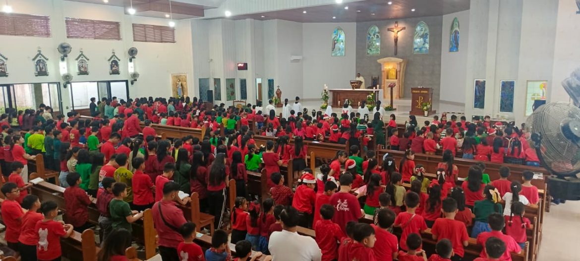 Tanjungpandan, YTKNews.Id. Keceriaan terpancar dari wajah ratusan peserta didik Sekolah Regina Pacis Belitung pada Jumat, 9 Januari 2026. Seluruh jenjang pendidikan, mulai dari KB/TK, SD, hingga SMP Regina Pacis, berkumpul bersama untuk merayakan sukacita Natal dan Tahun Baru dalam rangkaian acara yang penuh khidmat dan kemeriahan.