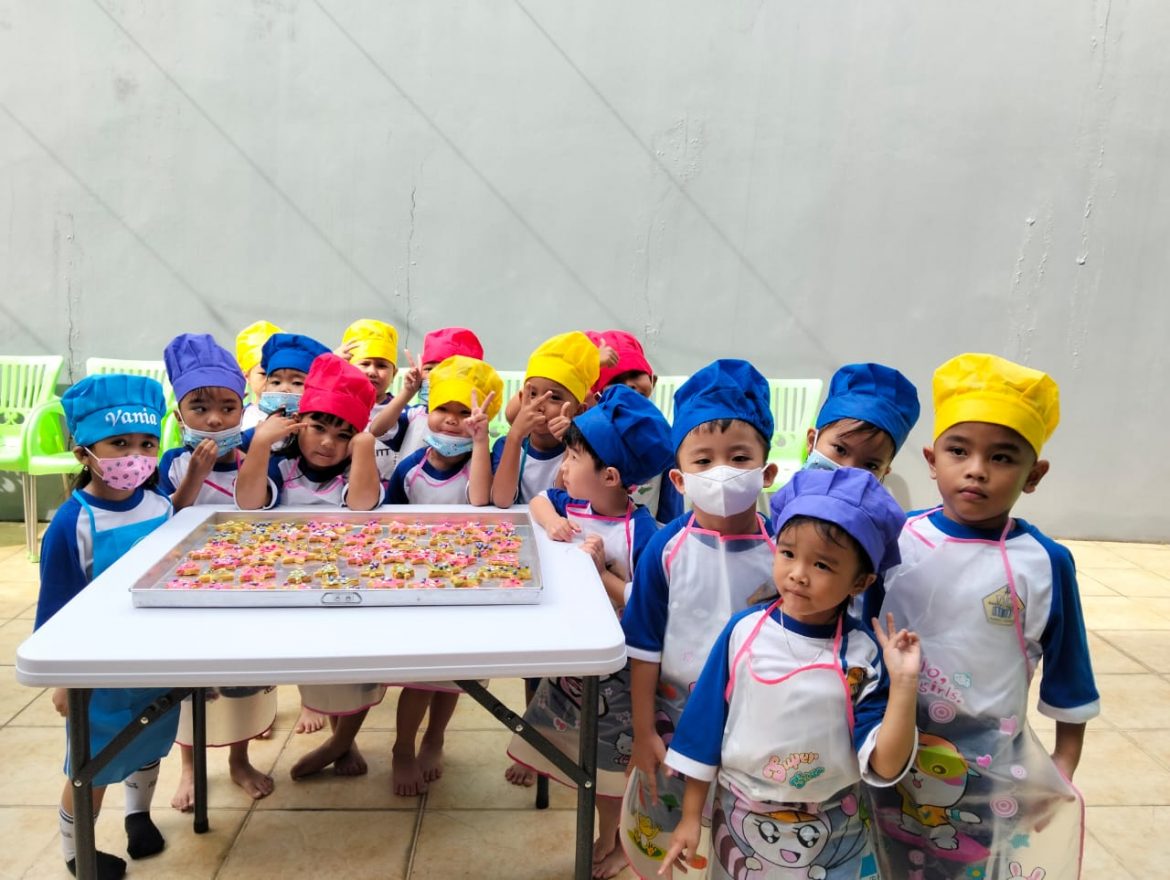 Di kegiatan yang dilaksanakan pada 11 Desember 2025 yang lalu ini, setiap anak mendapat kesempatan untuk menuangkan bahan – bahan adonan cookies dan mencetak adonan cookies sesuai imajinasinya. Kemudian dilanjutkan menghias cookies berbentuk bintang, pohon Natal, dan ornamen khas lainnya. Dengan bimbingan guru, anak-anak mengoleskan krim berwarna merah muda dan hijau, kemudian menaburkan hiasan gula warna-warni sesuai kreativitas masing-masing. Beberapa anak tampak sangat teliti menata dekorasi, sementara yang lain menunjukkan ekspresi bangga ketika hasil karyanya selesai. Walaupun beberapa anak masih tampak ragu saat menghias, namun proses belajar inilah yang menjadi nilai penting dari kegiatan ini.