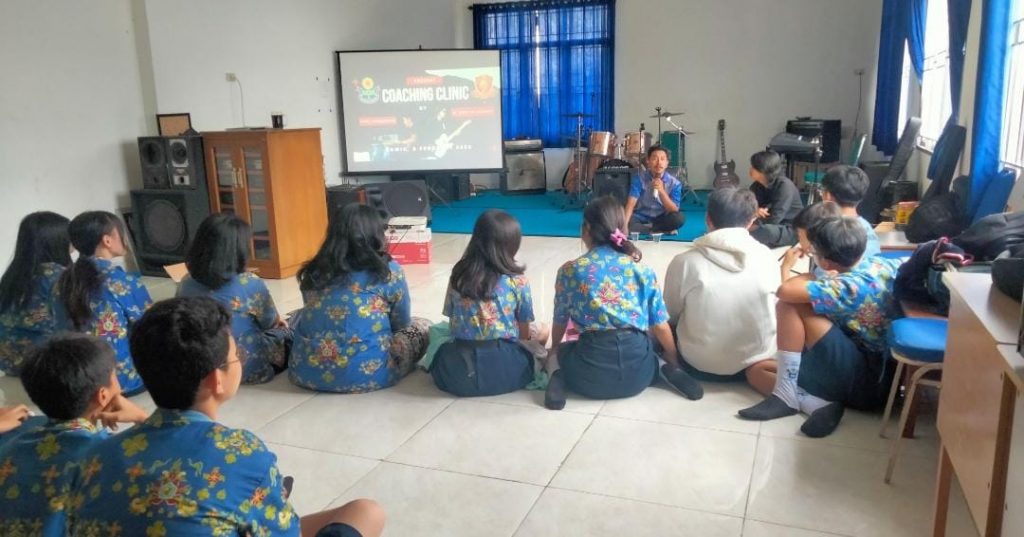 Pangkalpinang, YTKNews.id — Ruang Seni SMP Santa Theresia Pangkal Pinang tampak lebih hidup dari biasanya. Sebanyak 15 murid yang tergabung dalam Santher Band Club mengikuti kegiatan workshop musik berkonsep coaching clinic bertajuk “Band 101: Lebih dari Sekadar Skill Bermusik” pada 5 Februari lalu. Kegiatan ini dibuka langsung oleh pendamping klub band, Seta Dewa, dengan menghadirkan dua praktisi musik berpengalaman, Fikri Firmansyah dan Muhammad Sibly Al-Khadafi.