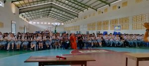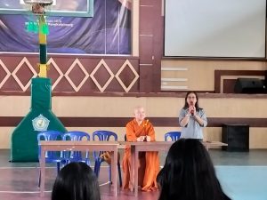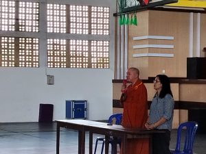 Pendalaman iman ini dipandu secara langsung oleh Biksu Badara Loka, yang hadir untuk membimbing para peserta didik dalam memahami nilai-nilai dasar ajaran Buddha, khususnya tentang kesadaran diri, ketenangan batin, dan sikap hidup penuh welas asih. GOR yang biasanya ramai, Siang itu berubah menjadi ruang refleksi yang tenang, di mana para peserta didik mengikuti kegiatan dengan sikap hormat dan penuh perhatian.