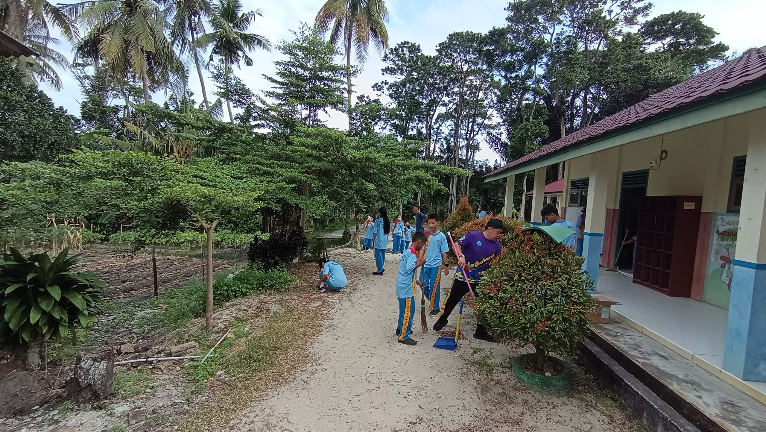 Di bawah sorot matahari pagi, Letisia, Kepala SMP Santa Maria Mentok, berdiri di tengah lapangan memberikan komando. Ia tidak hanya memberi perintah, tapi membakar semangat para siswa tentang betapa berharganya menjaga rumah kedua mereka agar tetap asri. Dengan pembagian tim yang solid, misi pelestarian lingkungan pun dijalankan.