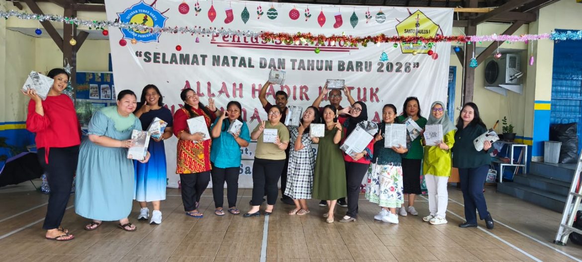 Pangkalpinang, YTKNews.id – Suasana penuh sukacita dan kehangatan mewarnai kegiatan tukar kado dan game Natal yang diikuti oleh guru dan karyawan SD Santo Paulus 1 pada Jumat (9/1/2026) di lingkungan sekolah. Kegiatan ini menjadi momen kebersamaan yang sederhana namun bermakna dalam rangka merayakan Natal dan menyambut Tahun Baru.