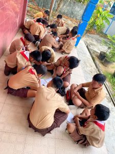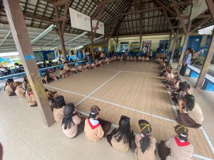 Suasana menjadi sangat riuh saat tiap regu berteriak lantang menunjukkan yel-yel kreatif mereka, menghafal lagu-lagu Pramuka, dan berlatih kedisiplinan dalam simulasi upacara.