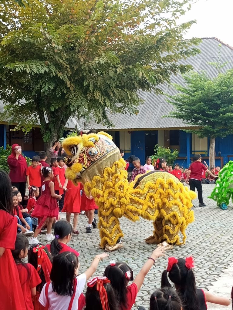Dengan cara yang unik, penonton memberikan memberikan angpao kepada barongsai dengan menggunakan pipa yang ada, karena mengingat bahwa penonton masih berada dijenjang SD. Suasana yang terciptapun sangat sangat meriah.