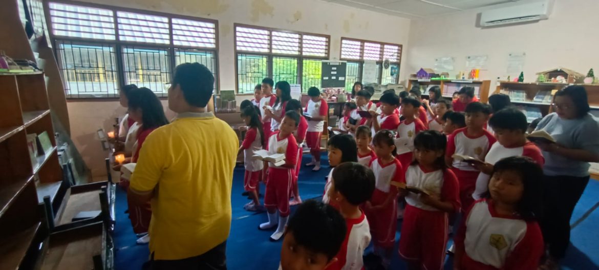 Pangkalpinang, YTKNews.id –Pada Maret 2026, di tengah hiruk-pikuk aktivitas sekolah, ada pemandangan yang berbeda di ruang perpustakaan SD Santo Paulus 1 setiap hari Jumat selama masa Prapaskah. Ruangan yang biasanya penuh dengan suara bisikan siswa yang membaca buku, kini berubah menjadi tempat doa yang penuh ketenangan untuk melaksanakan ibadat Jalan Salib.