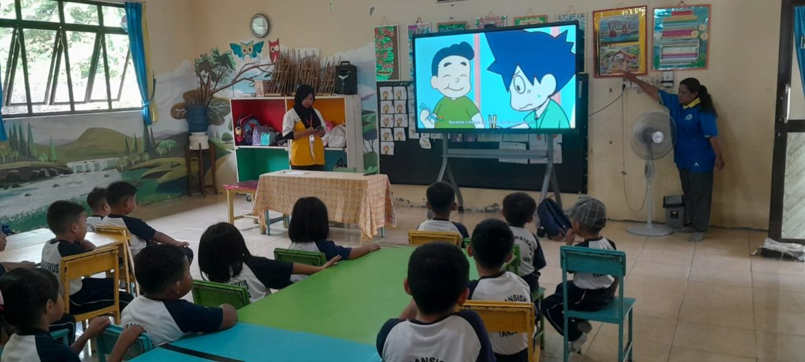 Agar kegiatan semakin menarik, anak-anak diajak menonton film kartun yang menjelaskan manfaat Yakult bagi kesehatan. Mereka terlihat sangat antusias mengikuti setiap kegiatan yang diberikan.