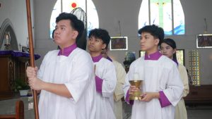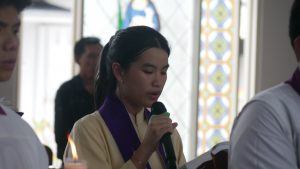 Petugas ibadat yang terdiri dari para peserta didik menjalankan tugasnya dengan penuh tanggung jawab. Para putra altar berjalan dengan tertib membawa lilin dan salib, menghadirkan suasana doa yang mendalam. Sementara itu, para lektor membacakan renungan di setiap perhentian dengan suara yang jelas dan penuh penghayatan, mengajak seluruh peserta untuk masuk dalam suasana refleksi dan pertobatan.