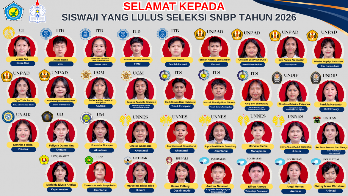 Berikut ini adalah daftar nama siswa yang lolos SNBP 2026 :