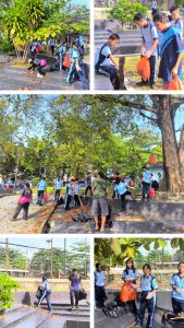 Dengan penuh semangat, para siswa membawa “alat perang” mereka—sapu, kantong plastik, dan sarung tangan. Khusus tim di Taman Sari, perjalanan dari sekolah menuju lokasi menjadi bagian dari perjuangan yang dijalani dengan sukacita.