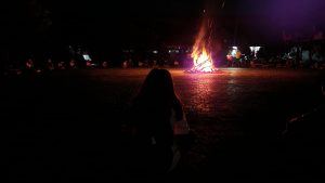 Setelah rangkaian sesi 3 di aula berakhir, para siswa perlahan bergerak menuju lapangan. Di sana, sebuah api unggun telah menyala, memecah kegelapan malam dengan cahayanya yang hangat. Sambil membentuk lingkaran besar mengelilingi kobaran api, para siswa menciptakan simbol kebersamaan yang erat, bersiap untuk menutup hari dengan semangat persaudaraan yang baru.